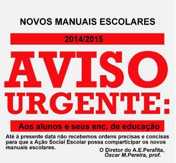 Notícias AVISO – Novos Manuais Escolares 2014/2015 6 de Outubro, 2014 AVISO – Novos Manuais Escolares 2014/2015