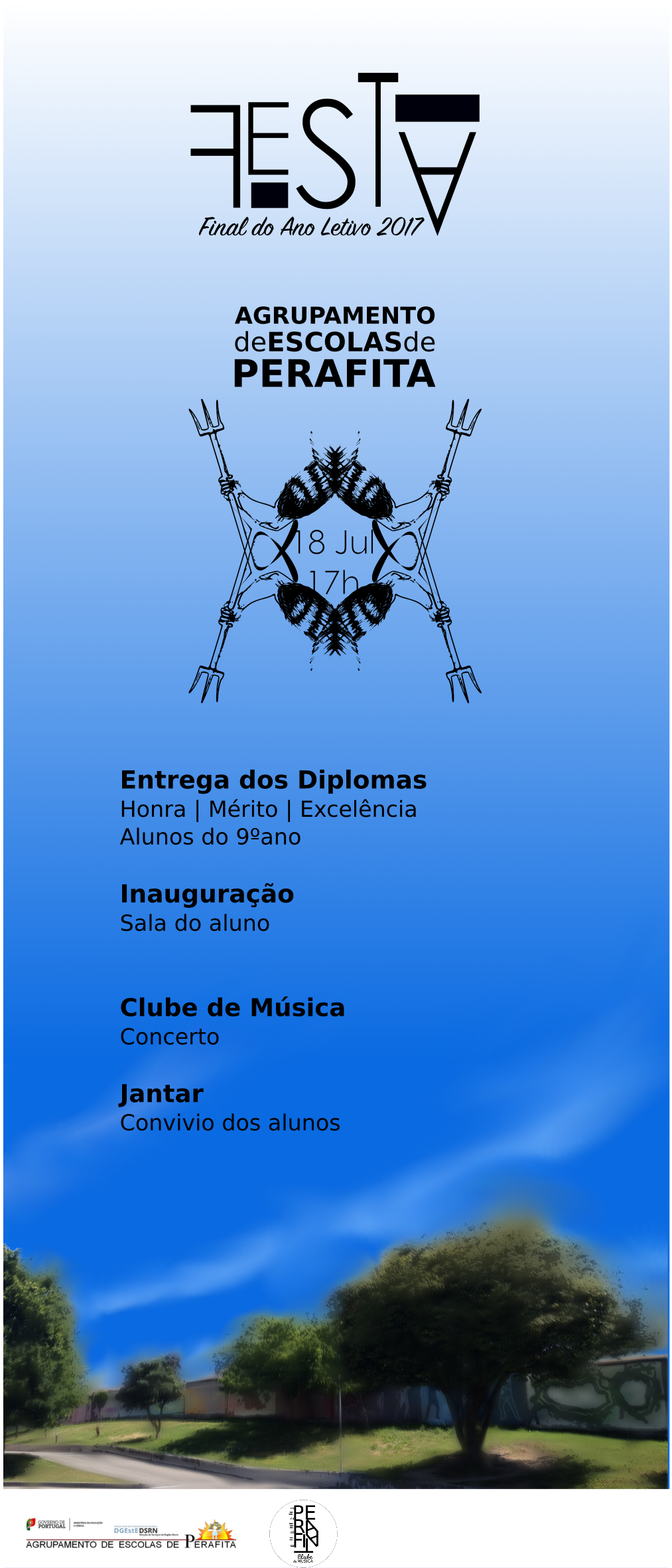 Notícias FESTA FINAL DO ANO LETIVO 2017 12 de Julho, 201712 de Julho, 2017 17h – Entrega de Diplomas e Quadro de Honra 19h – Inauguração da “Sala do Aluno” 19.30h – Jantar e Baile de Finalistas do 9º Ano.